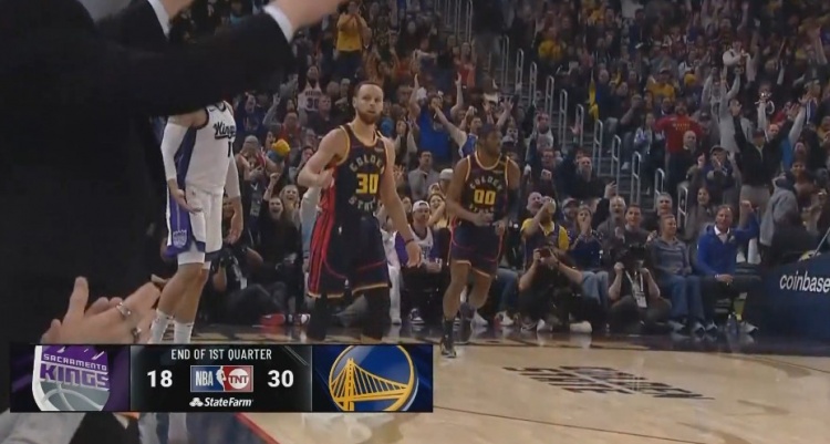 2025-03-14 12:11:03箭如雨下!勇士首节7记三分球30-18领先国王12分