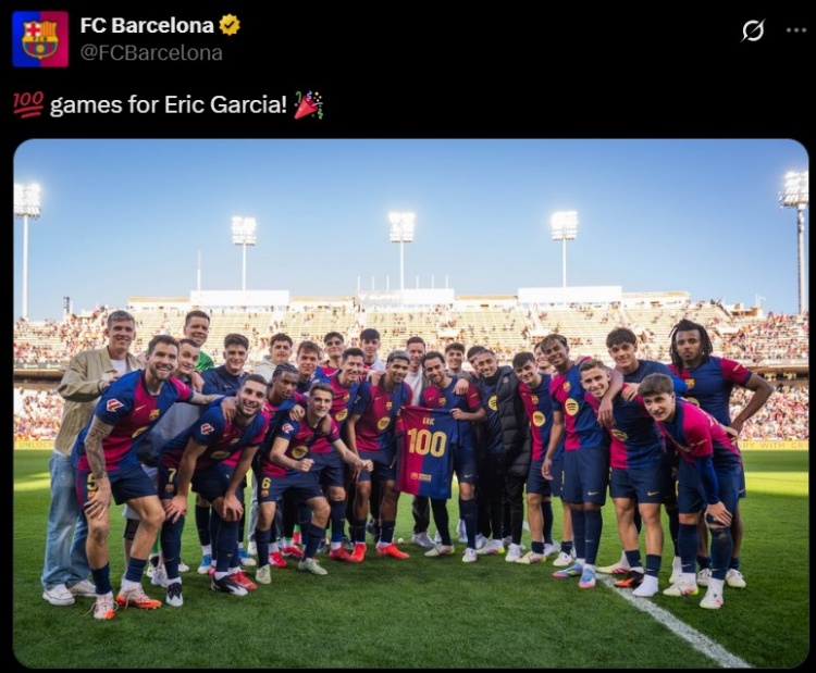 2025-04-01 00:07:30埃里克-加西亚迎巴萨百场里程碑,获赠纪念球衣&与全队合影留念