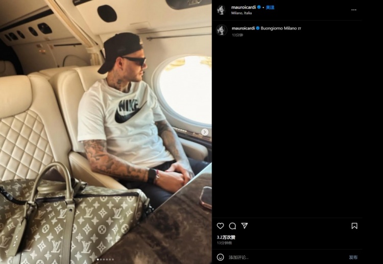 3月11日讯 加拉塔萨雷前锋伊卡尔迪更新社媒动态,配文:“早上好,米兰。”