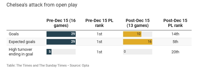 2025-03-19 16:00:21切尔西英超前16轮29粒运动战进球最多,最近13轮10粒排名第14