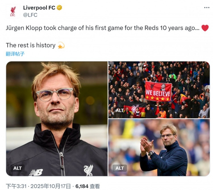 2025-10-17 16:00:40功勋主帅!10年前的今天克洛普执教利物浦首秀,带队9年斩获8冠