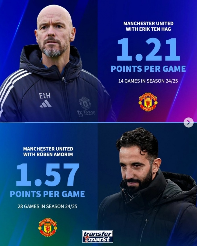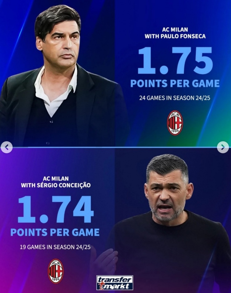 2025-03-20 00:01:03本赛季中途换帅6支球队场均积分变化:曼联提升0.36分,米兰下降