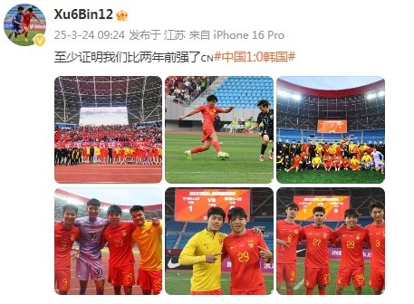 2025-03-24 20:02:17成功复仇韩国,U22国足球员徐彬晒照:至少证明我们比两年前强了
