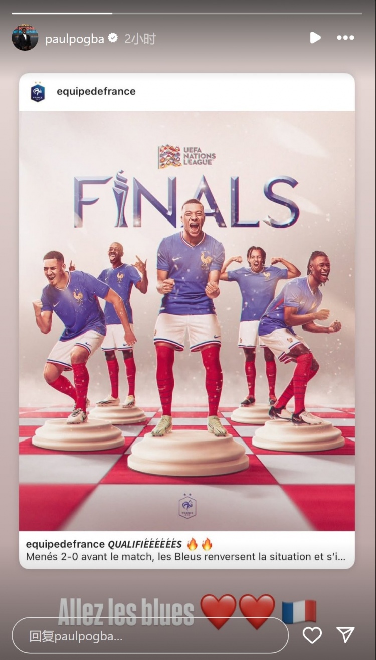 2025-03-24 20:03:38心系国家队!博格巴社媒晒法国队晋级海报:加油蓝衣军团