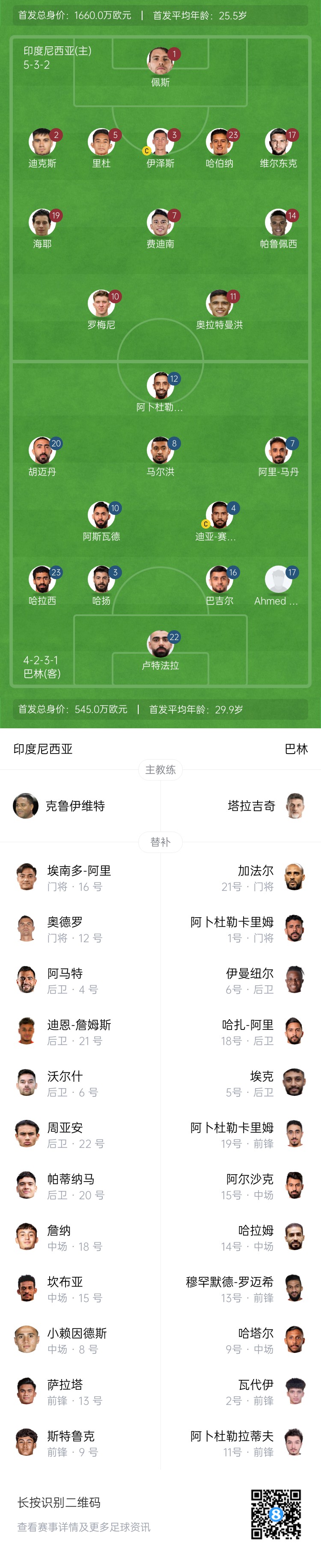 2025-03-26 00:02:07国足竞争对手!印尼vs巴林首发:印尼9归化,罗梅尼、迪克斯先发